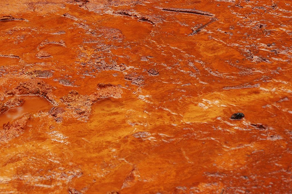 Wat een enorm contrast!Diep oranje klei en fris groen gras. Gele poeltjes, en bizar tafereel